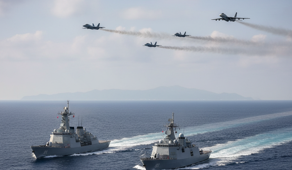 Forças navais e aéreas chinesas realizam manobras estratégicas, avaliando integração e precisão em exercícios militares próximos a Taiwan.