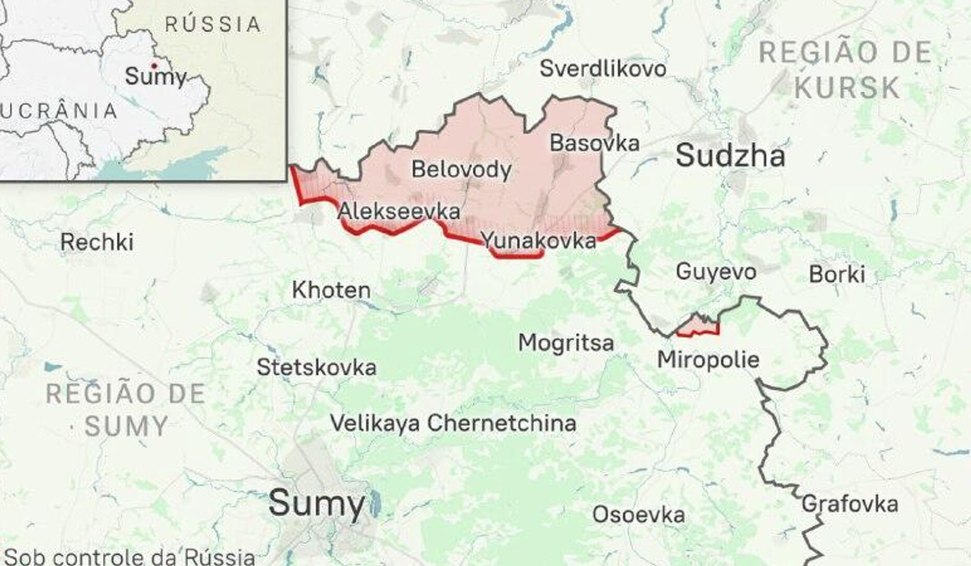Após a retirada das forças ucranianas de Sudzha, uma extensa faixa territorial na região de Sumy, com mais de 60 quilômetros de comprimento e até 16 quilômetros de profundidade, passou a ser controlada pela Rússia.