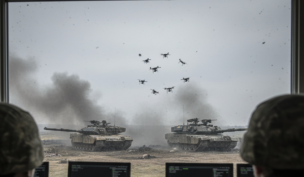 Imagens mostram destruição de veículos Abrams e Leopard, além de ataque coordenado com enxame de drones em Donetsk.