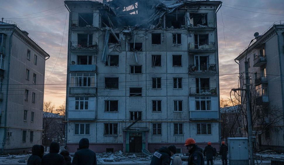 Ataque noturno danifica prédios residenciais e instalações de energia; ofensiva russa mira infraestrutura ucraniana durante o inverno.
