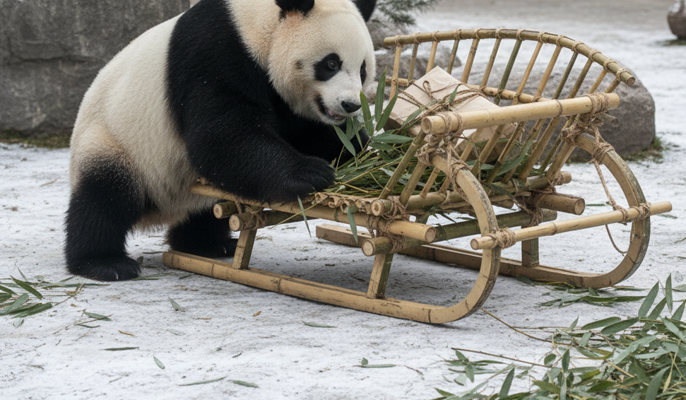 Panda Katyusha vira sensação ao ganhar trenó de bambu no Zoológico de Moscou