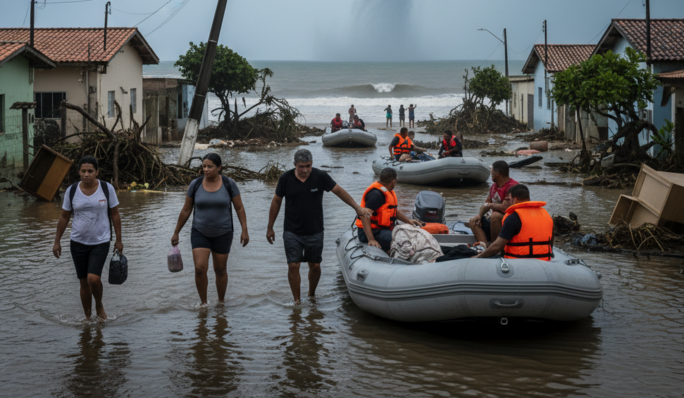Chuva intensa deixa dezenas de desabrigados em cidades paulistas, enquanto fenômeno raro é registrado no litoral fluminense.