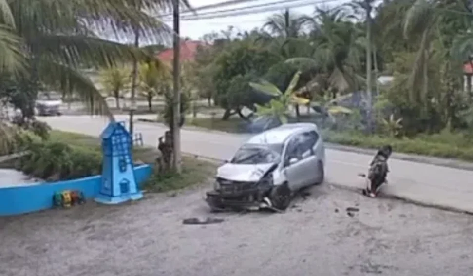 Um motociclista foi arremessado por cerca de 20 metros e acabou caindo em um córrego após colidir com uma minivan em uma área rural do município de Selangor, na Malásia. O acidente aconteceu no momento em que o veículo maior realizava uma conversão à direita e atingiu a motocicleta, que seguia em sentido contrário.