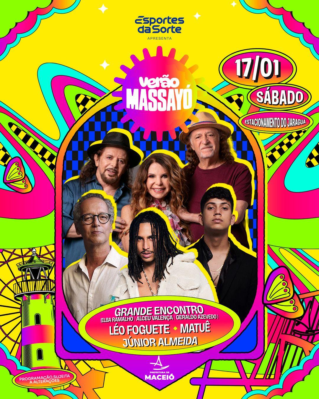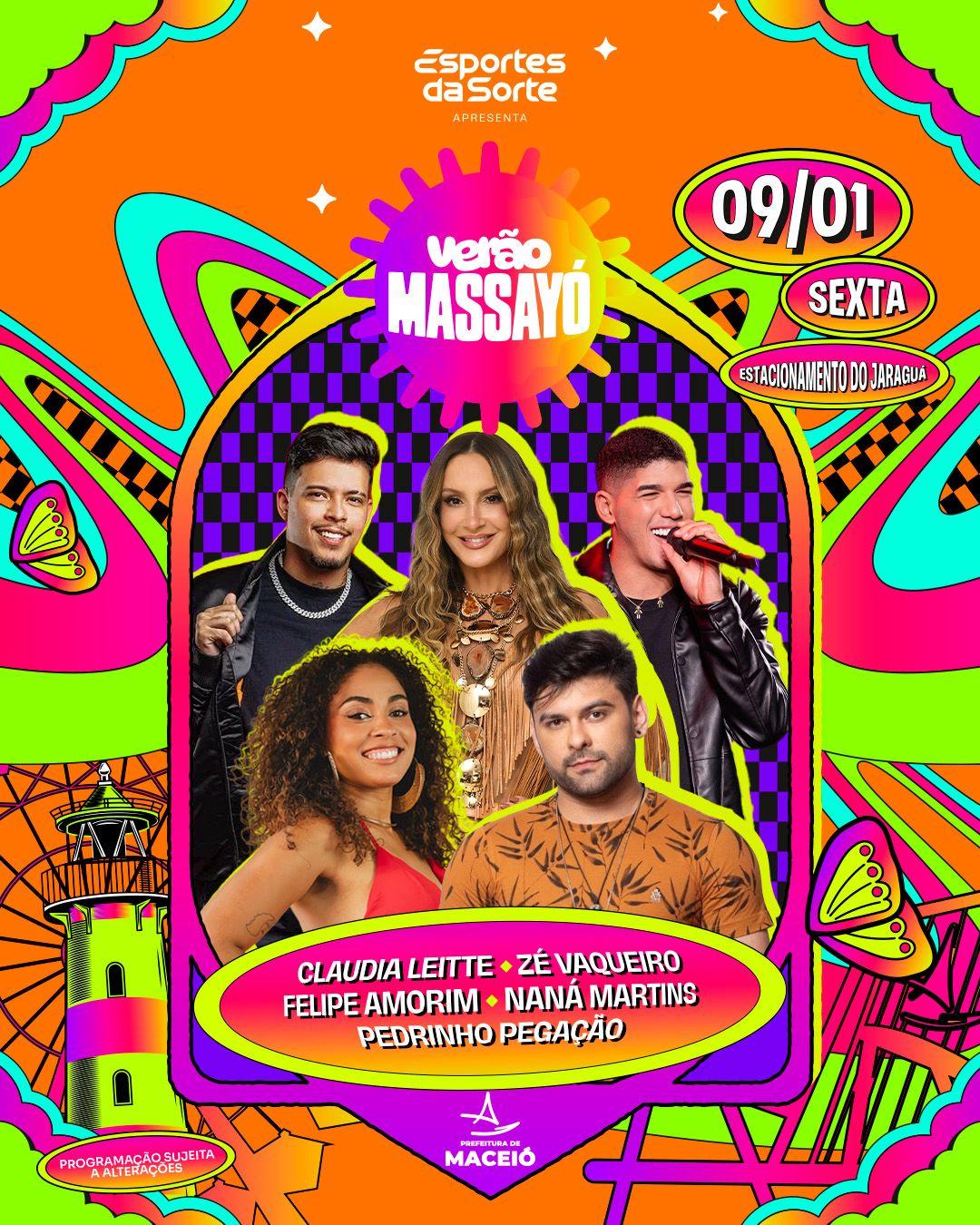 Na sexta-feira (09) começa mais uma edição do Verão Massayó, organizado pela Prefeitura de Maceió. Com uma extensa agenda de shows e apresentações que prometem movimentar a capital durante o mês de janeiro, o evento segue nos dias 10, 11, 16, 17 e 18.