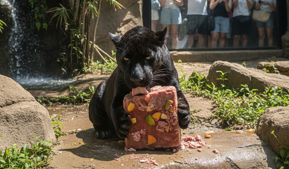 Animais do BioParque do Rio recebem picolés especiais para aliviar as altas temperaturas e estimular comportamentos naturais.