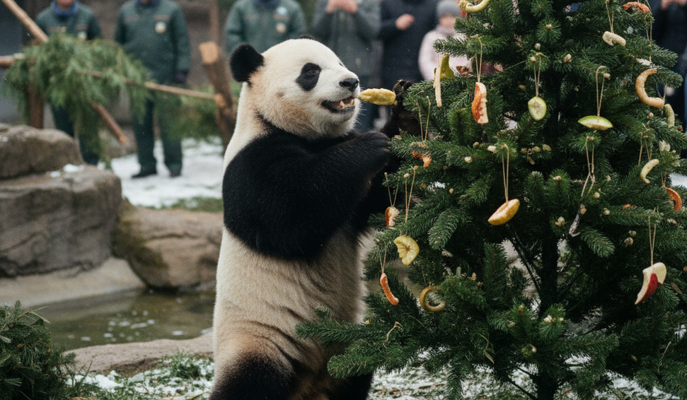 A panda gigante ganhou um pinheiro especialmente decorado com guloseimas, encantando tanto os visitantes quanto os cuidadores do local. A reação animada de Katyusha diante do presente especial chamou a atenção de todos e rendeu momentos de diversão e ternura.