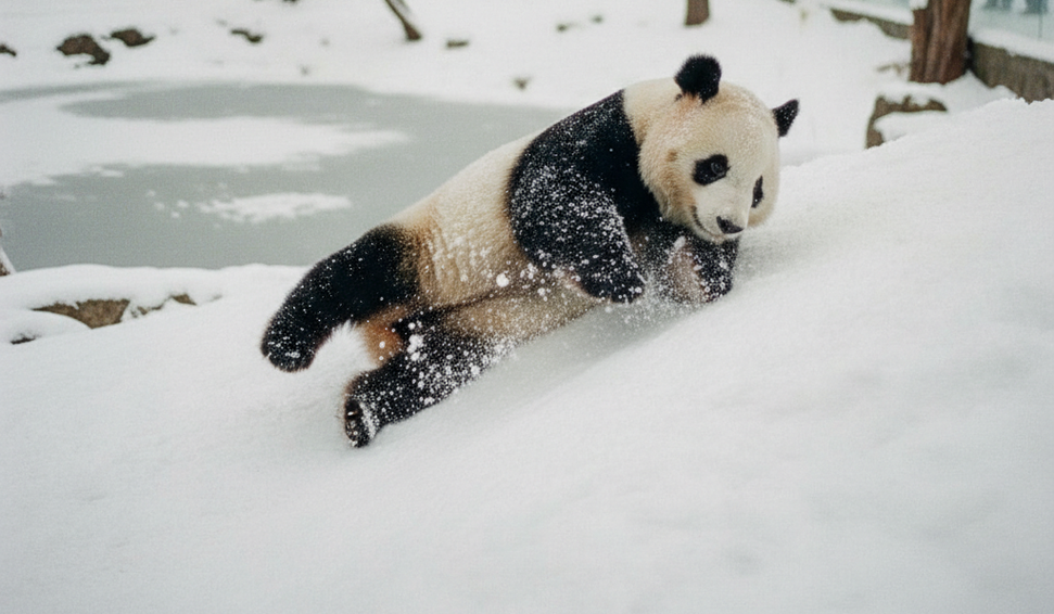 Brincadeira não tem idade, nem espécie: Dindin, uma panda adulta e mãe residente no Zoológico de Moscou, foi flagrada em um momento de pura diversão ao brincar na neve. A cena, registrada por funcionários e visitantes, evidencia o comportamento lúdico típico da espécie, independentemente da idade ou condição do animal.