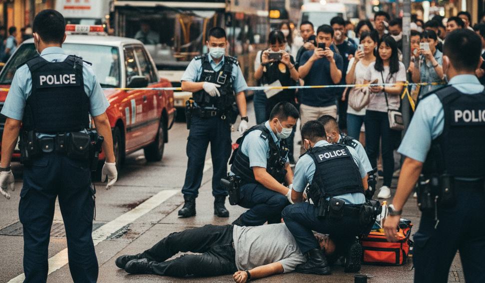 Imagens fortes: homem com faca tenta fazer refém e é baleado pela polícia em Hong Kong