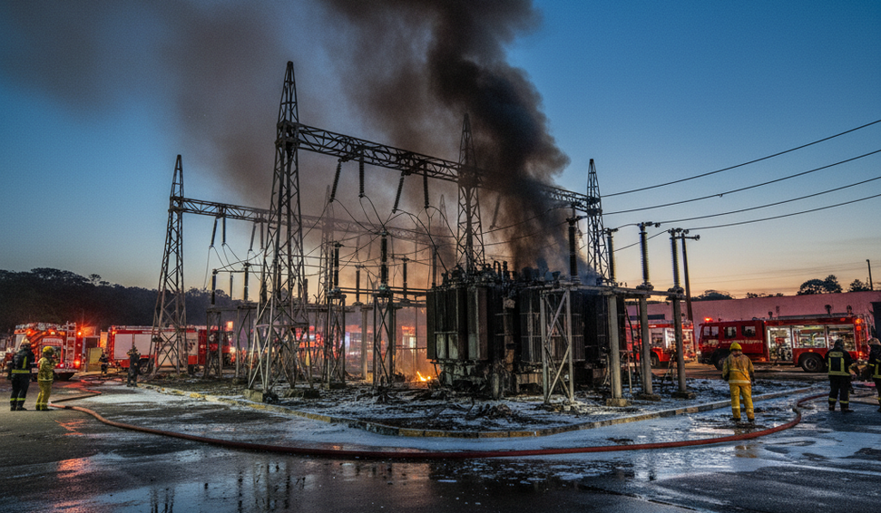 As equipes de emergência foram rapidamente acionadas para conter as chamas e evitar maiores danos à estrutura e ao fornecimento de energia.