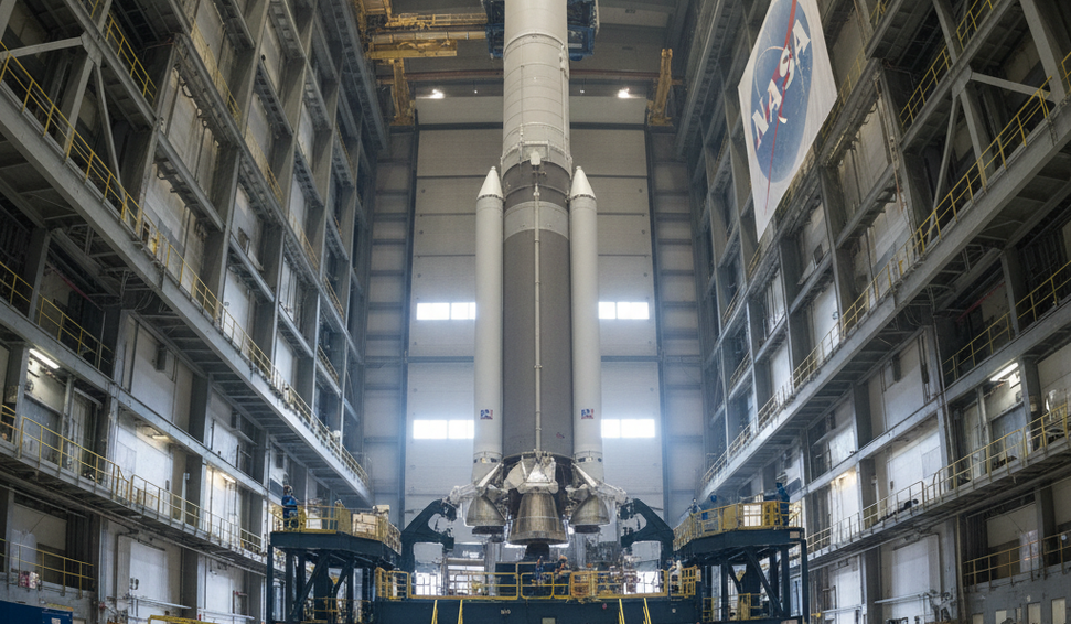 Neste sábado, 17, o foguete Space Launch System (SLS), já acoplado à cápsula Orion, será transportado do edifício de montagem para a plataforma de lançamento 39B, no Centro Espacial Kennedy, na Flórida, marcando o início da fase final de preparação para o voo.