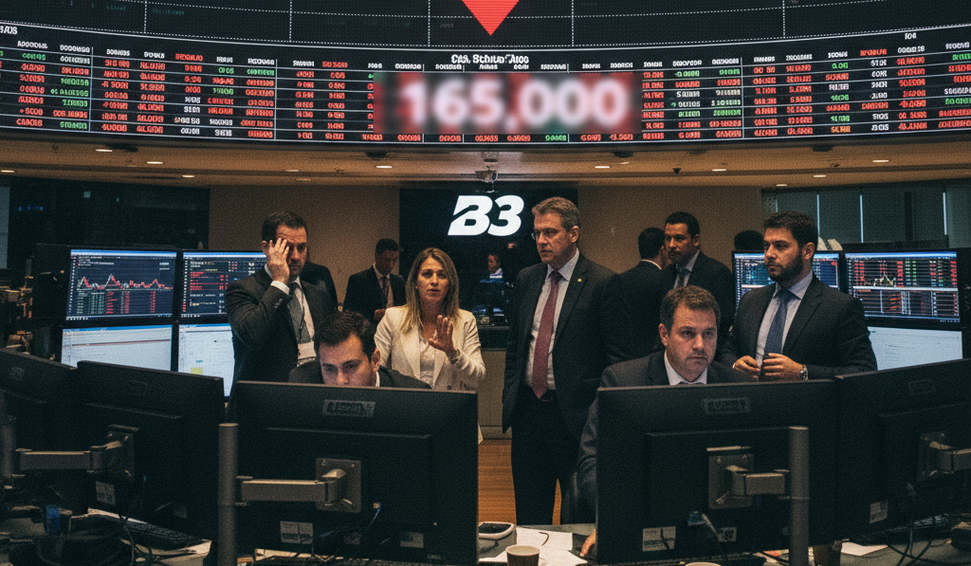 Ibovespa cai e perde nível recorde de 165 mil pontos da véspera, por temor com juros altos