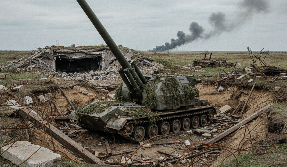 Morteiro russo Tulpan de 240 mm destrói posições estratégicas das forças ucranianas na direção de Kupyansk, região de Carcóvia. O equipamento, conhecido pelo seu poder de fogo, foi utilizado para eliminar um posto de comando e um ponto de deslocamento subterrâneo dos militares ucranianos.
