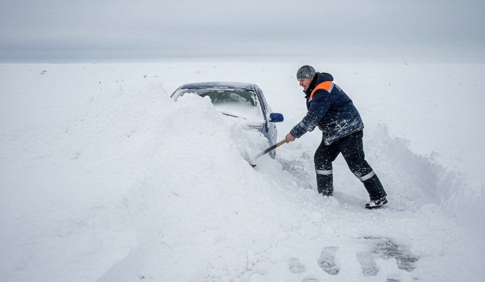 Nevasca histórica na região de Kamchatka, Rússia, faz morador cavar por horas para resgatar carro soterrado sob cinco metros de neve.