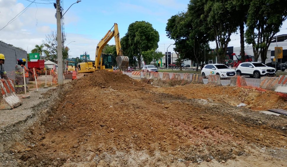 Atualmente, os trabalhos se concentram na etapa 2A, que abrange um trecho de 1,1 km entre a Tupan e a Churrascaria Stella Maris. No sentido Aeroporto, os serviços já estão na fase de acabamentos finais e próximos da liberação do tráfego de veículos. No sentido Centro, as equipes atuam na implantação de drenagem, urbanização e pavimentação em diferentes pontos da nova faixa lateral.
