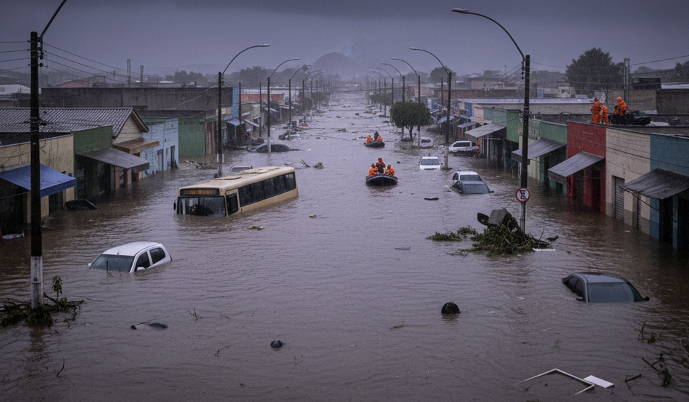 De acordo com a MetSul, o cenário é classificado como de "grande perigo", com risco elevado de alagamentos, inundações, cheias de rios e deslizamentos de terra, sobretudo em áreas urbanas e regiões montanhosas.