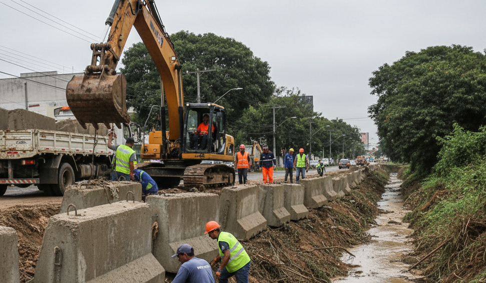 Medida emergencial busca proteger motoristas na Avenida Carlos Caldeira Filho, onde casal de idosos foi vítima de enchente.