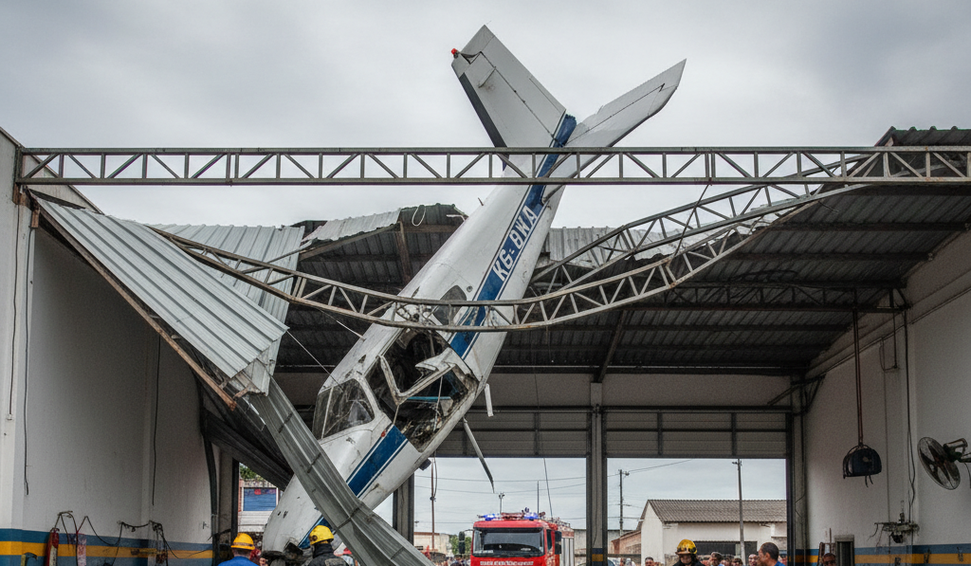 De acordo com relatos, o piloto tentava realizar um pouso forçado pouco após a decolagem, quando a aeronave colidiu com o galpão. Parte do teto da estrutura foi destruída com o impacto.