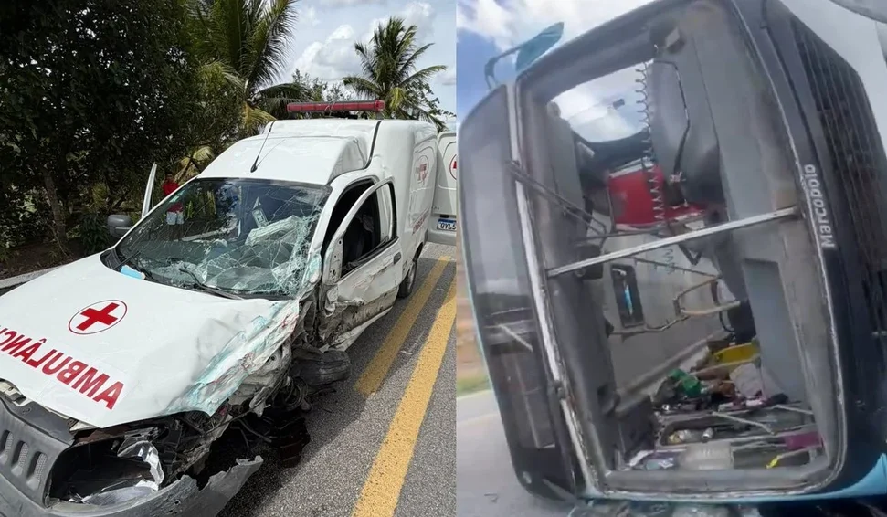 Segundo informações apuradas no local, o ônibus e a ambulância trafegavam em sentidos opostos quando colidiram frontalmente no trecho da rodovia federal. Com o impacto, o ônibus tombou e ficou atravessado na pista, interrompendo o fluxo de veículos. A ambulância sofreu danos significativos, especialmente na parte frontal e na lateral do banco do motorista.