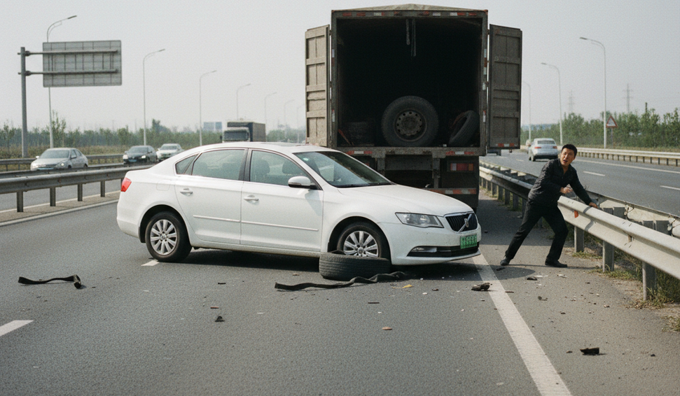 Carro 'bem-educado' colide com pneu perdido e devolve-o ao caminhão na China