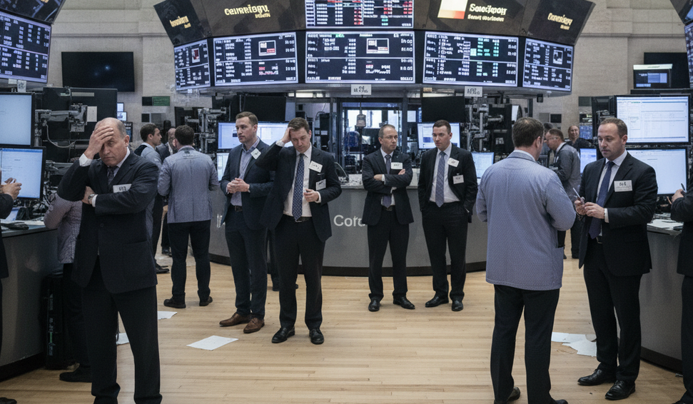 Índices recuam até 2,39% com aversão ao risco e temores de escalada comercial entre EUA e Europa; tecnologia e bancos lideram perdas