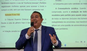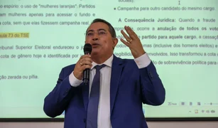 Durante a palestra, Adeilson Bezerra problematizou as questões relativas às cotas de gênero no processo eleitoral, destacando suas implicações, os desafios enfrentados pelos partidos políticos e a necessidade de aperfeiçoamento da legislação eleitoral.