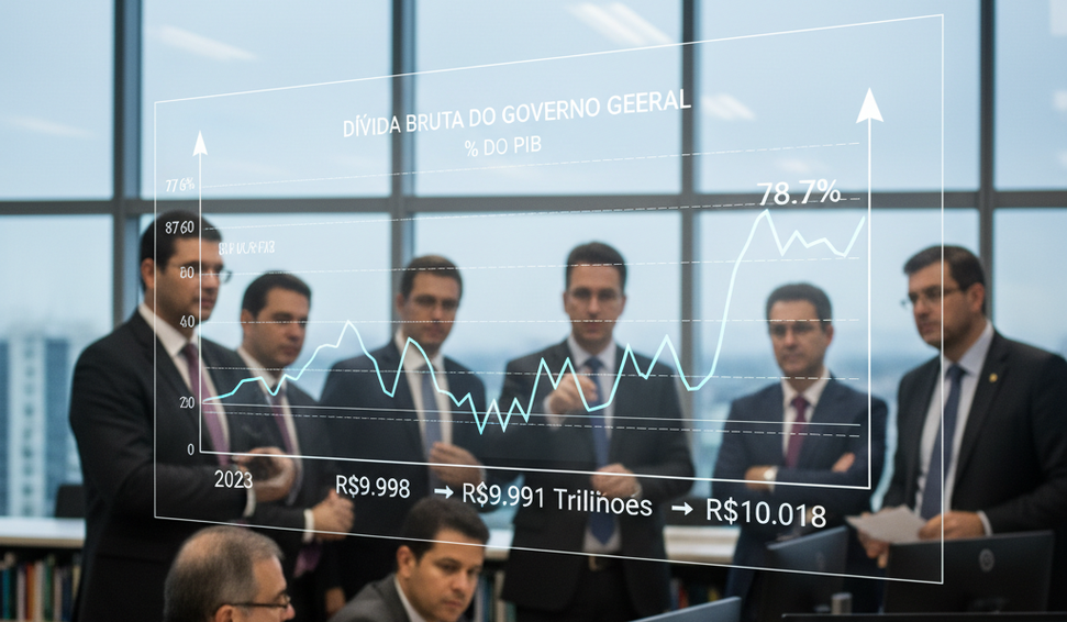 A Dívida Bruta do Governo Geral (DBGG) encerrou dezembro de 2023 em 78,7% do Produto Interno Bruto (PIB), ante 79,0% registrados em novembro, segundo dados divulgados pelo Banco Central nesta sexta-feira (30). Em valores nominais, a dívida passou de R$ 9,991 trilhões para R$ 10,018 trilhões.