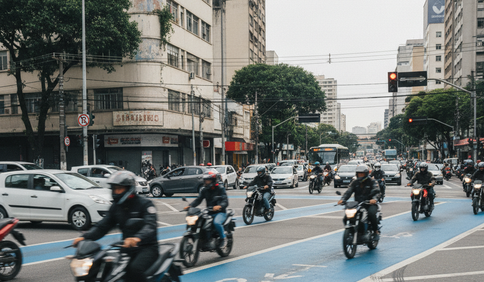 Criado em 2022 na capital paulista como projeto-piloto nacional, o programa Faixa Azul teve rápida expansão e já supera 200 quilômetros. O modelo vem sendo replicado em outras capitais. Em São Paulo, a sinalização soma 233,3 quilômetros em 46 vias, com estimativa de atender cerca de 500 mil motociclistas por dia. A meta da prefeitura é chegar a 400 quilômetros até 2028.