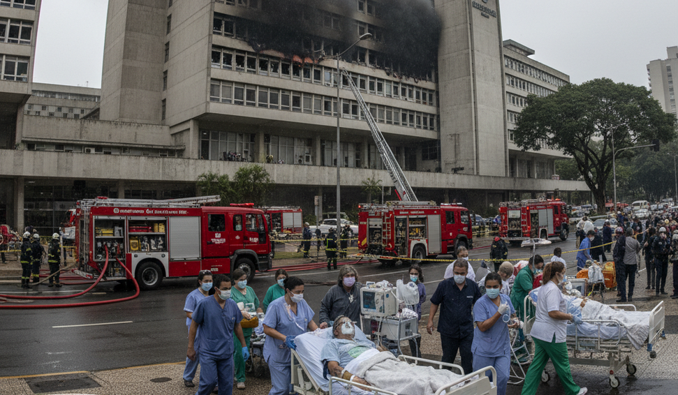 Equipes do Corpo de Bombeiros Militar continuam atuando no local para conter o fogo e garantir a segurança de pacientes e profissionais. De acordo com informações preliminares, o incêndio teria sido causado por um acidente em uma caldeira do hospital.