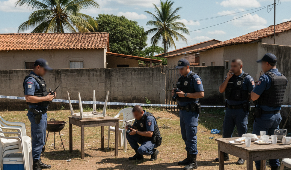 Equipes da Polícia Militar, do Instituto de Criminalística e do Instituto Médico Legal foram acionadas para os procedimentos periciais. O caso será investigado pela Polícia Civil, que busca localizar o suspeito e esclarecer todas as circunstâncias do homicídio.