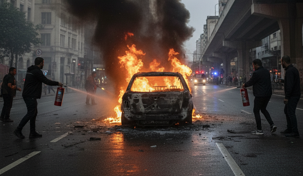 Testemunhas tentaram controlar as chamas com extintores, mas não tiveram sucesso. O chamado aos bombeiros foi registrado por volta das 18h50. Uma equipe foi enviada ao local e conseguiu extinguir o incêndio rapidamente.