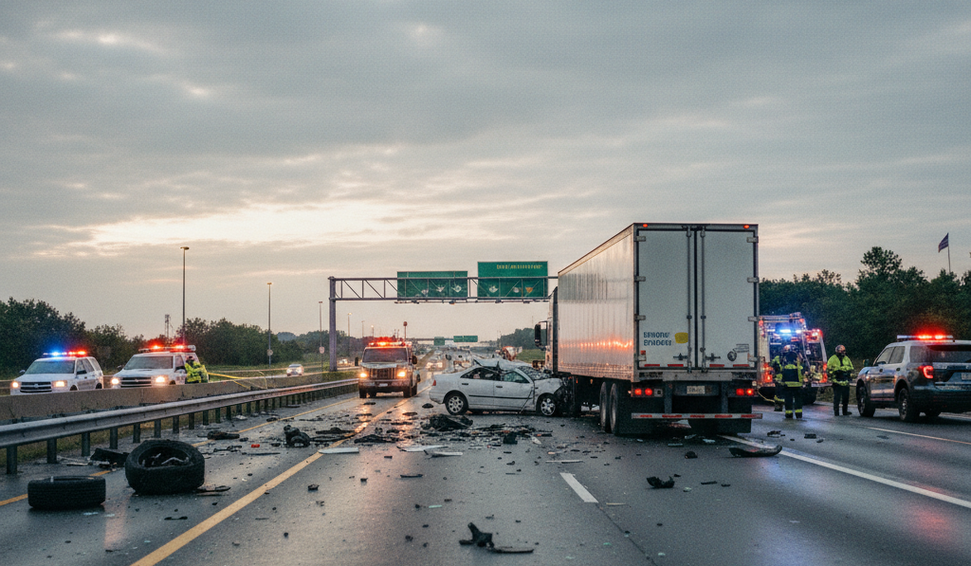 Acidente entre carro e carreta deixa três mortos e um ferido grave em Itapecerica da Serra