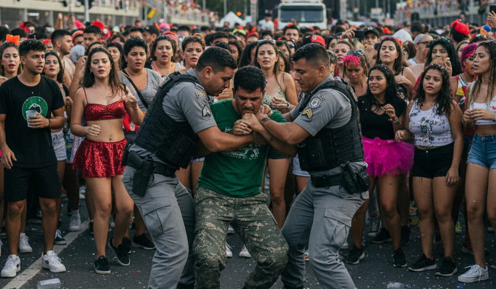 Vídeo mostra policiais militares usando força excessiva contra homem, identificado depois como militar do Exército, durante dispersão de bloco carnavalesco em São Paulo. SSP afirma que investiga conduta dos agentes.