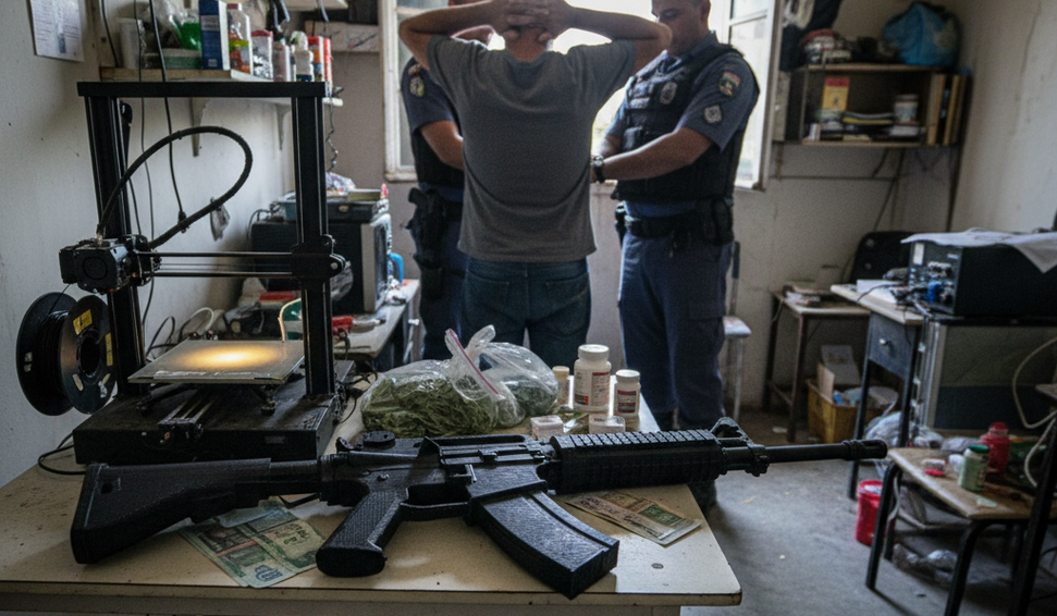 Um homem de 40 anos foi preso nesta quinta-feira (19), em Americana, interior de São Paulo, suspeito de armazenar e comercializar entorpecentes e medicamentos de origem estrangeira de forma irregular no país. O que chamou a atenção da polícia foi a apreensão de um fuzil falso produzido por uma impressora 3D.