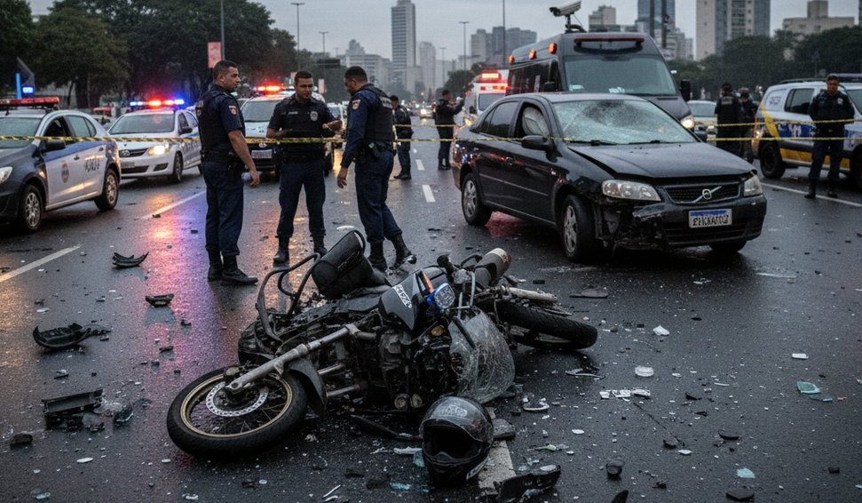 Agente da PM voltava para casa de motocicleta quando foi atingido por condutor estrangeiro que dirigia na contramão