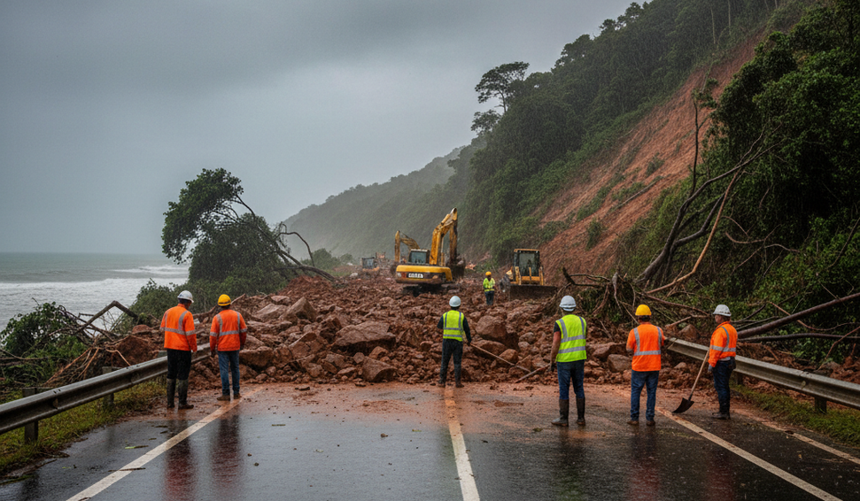 A via permanece totalmente interditada. Equipes de engenharia farão nova avaliação no local.