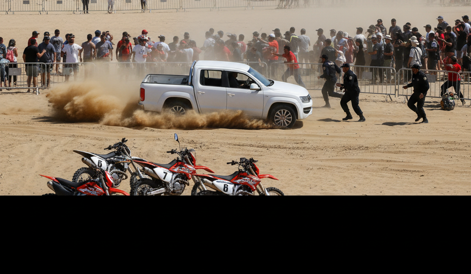 Um momento de tensão marcou a tradicional competição Enduro del Verano, em Villa Gesell, na Argentina. Durante o evento, que atrai milhares de espectadores às dunas da Costa Atlântica, o condutor de uma picape Amarok acessou a pista em alta velocidade, provocando pânico entre os presentes.