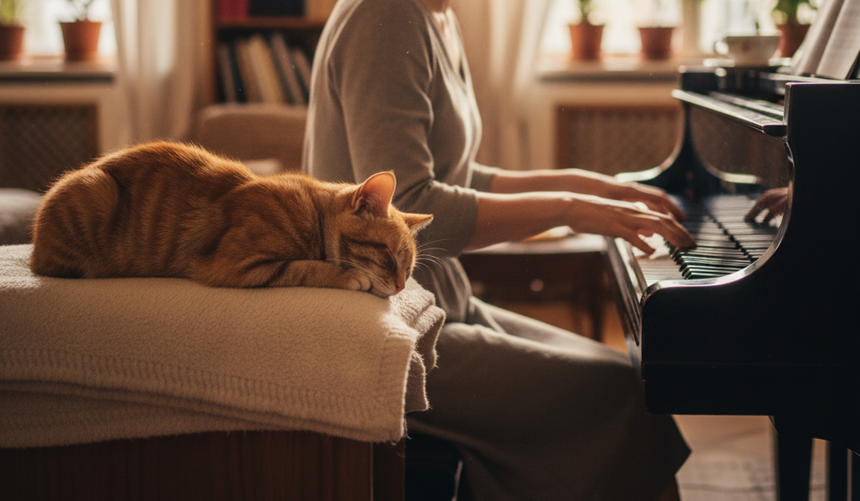 Na Croácia, um gatinho foi flagrado tirando uma soneca ao lado de sua tutora enquanto ela executava uma peça de Chopin ao piano. A cena, que viralizou nas redes sociais, mostra como a música pode acalmar até mesmo os pets.