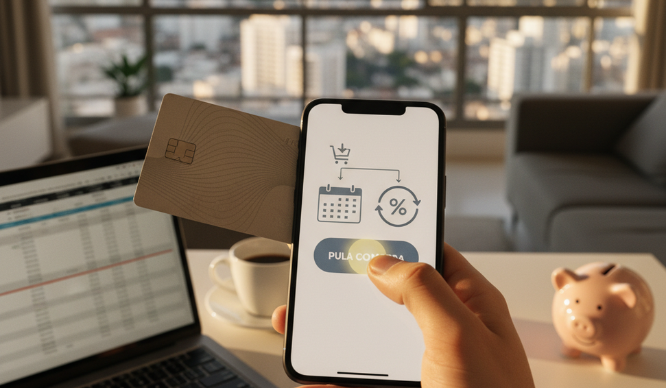 Nova função 'Pula compra' possibilita transferir uma despesa da fatura atual para a próxima, sem cobrança de juros, e pode ser usada mensalmente.