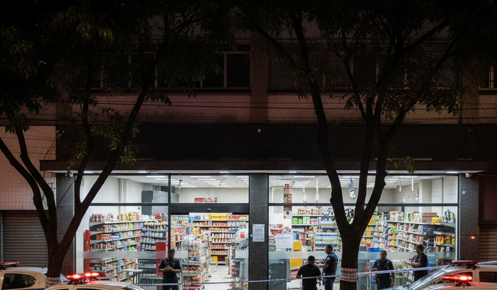 No local, as vítimas relataram que o grupo entrou armado, rendeu os funcionários e, durante a ação, um alarme disparou, assustando os suspeitos, que fugiram levando produtos do mercado.