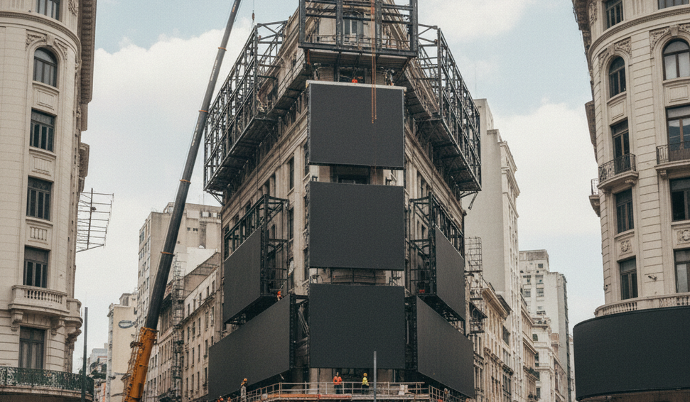 O projeto prevê a implantação de cinco telões em prédios não tombados no cruzamento da Ipiranga com a São João. O edifício do Bar Brahma, por ser patrimônio protegido, receberá apenas projeções de luzes, sem painéis de LED. A empresa já realizou simulações ilustrativas de como os equipamentos devem ficar.