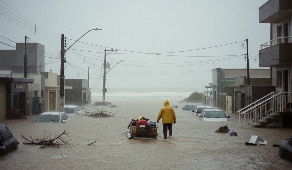 O Instituto Nacional de Meteorologia (Inmet) emitiu um alerta vermelho para o litoral paulista na última terça-feira (24), válido até a noite de sexta-feira. O aviso indica possibilidade de volumes superiores a 60 mm/h ou mais de 100 mm por dia.
