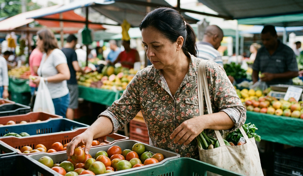 Entre os itens que mais subiram no período estão o tomate (10,09%) e as carnes (0,76%). Por outro lado, arroz (-2,47%), frango em pedaços (-1,55%) e frutas (-1,33%) registraram queda de preços.