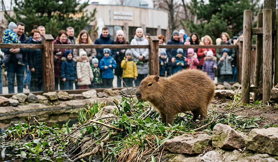 O Zoológico de Moscou apresentou ao público Simka, uma filhote de capivara que vem conquistando os visitantes pelo desenvolvimento precoce e personalidade curiosa. Nascida em 18 de setembro de 2025, junto com a irmã Verta, Simka completou cinco meses recentemente e já demonstra hábitos de animal adulto.
