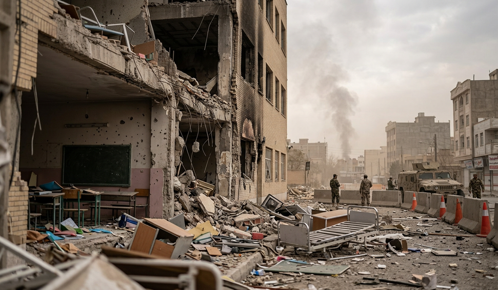 As declarações foram feitas após a evacuação do hospital Ghandi, em Teerã, devido a bombardeios de uma operação conjunta entre EUA e Israel. Os ataques atingiram um transmissor de sinais da televisão estatal iraniana e partes de um prédio da emissora, próximos à unidade de saúde. A agência semioficial Tasnim divulgou vídeos mostrando vidros estilhaçados no hospital, destroços espalhados pelas ruas e edifícios danificados. O Ministério da Saúde informou que equipes de emergência retiraram pacientes do local.