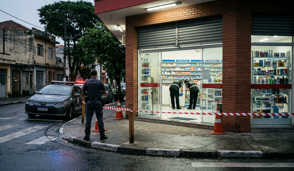 Segundo a Polícia Militar, dois criminosos invadiram o local por volta de 1h30 e anunciaram o assalto. Um policial civil de 49 anos, que estava na farmácia, interveio e atirou contra os suspeitos.