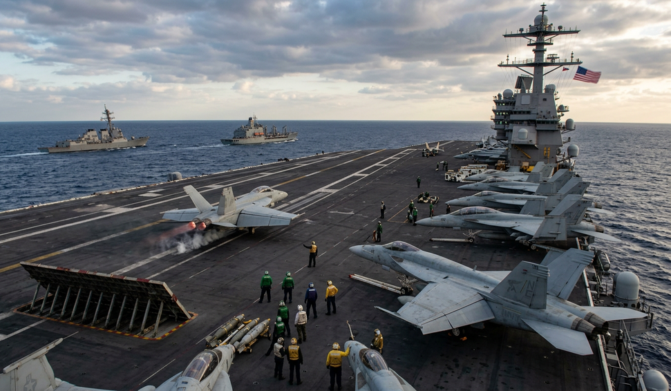 De acordo com autoridades militares, “as operações ininterruptas mantêm as caças F/A-18 da Marinha dos EUA em combate”, reforçando a prontidão das forças americanas na região.