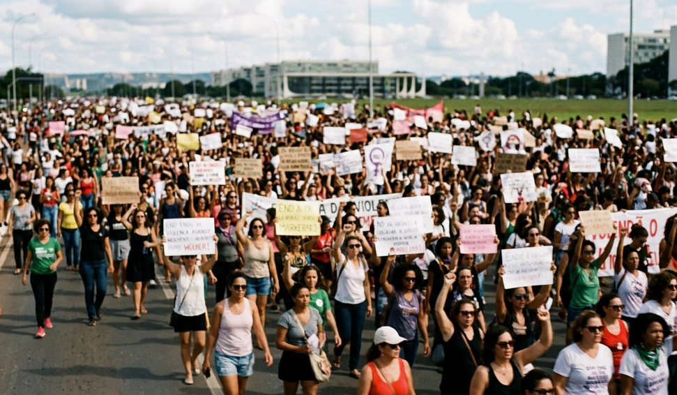 O Dia Internacional da Mulher foi marcado por manifestações em todos os Estados brasileiros e no Distrito Federal, reunindo milhares de pessoas em defesa do fim da violência contra as mulheres. Dados do Fórum de Segurança Pública apontam que, em 2025, o Brasil registrou 1.568 vítimas, um aumento de 4,7% em relação ao ano anterior.