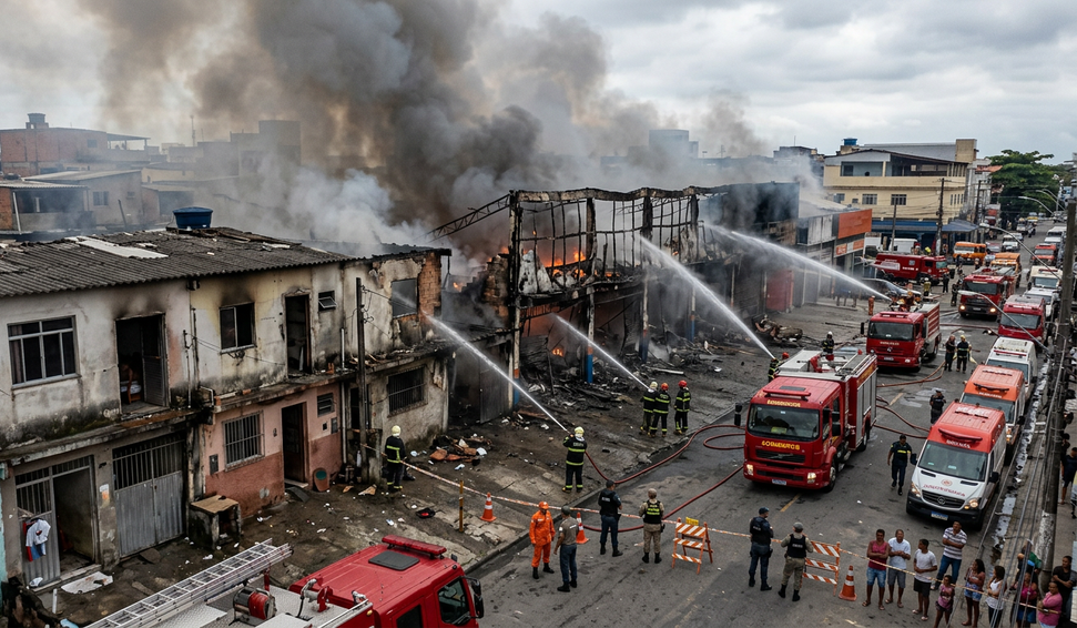 Incêndio de grandes proporções atinge loja e interdita casas no Rio