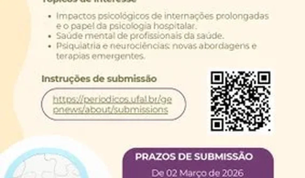Estão abertas as inscrições para a submissão de artigos científicos à revista GEP News, vinculada ao Hospital Universitário Professor Alberto Antunes (HU) da Universidade Federal de Alagoas (Ufal). A publicação terá como foco “Saúde Mental e Bem-Estar no Contexto Hospitalar”, e os interessados têm até o dia 5 de abril para submeter seus trabalhos.