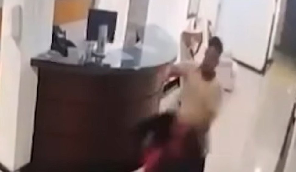 "Quando eu saí do banheiro, ele pulou o balcão da recepção e já veio tentando me abraçar. Eu empurrei ele e ele começou a me socar", contou.